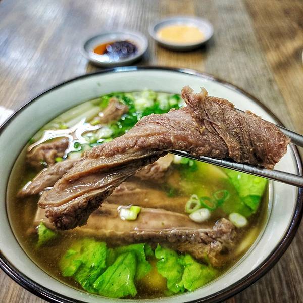 他們家的牛肋條給的毫不手軟,裡面一共5條給好給滿,目測肉量比訪間很多牛肉麵店多出不少。